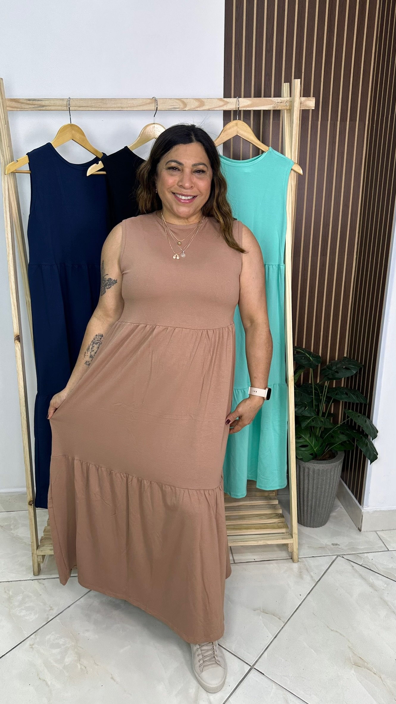Material leve, macio ao toque e com ótimo caimento. Ideal para peças do dia a dia, pois traz conforto, suavidade e um visual moderno sem pesar no corpo.